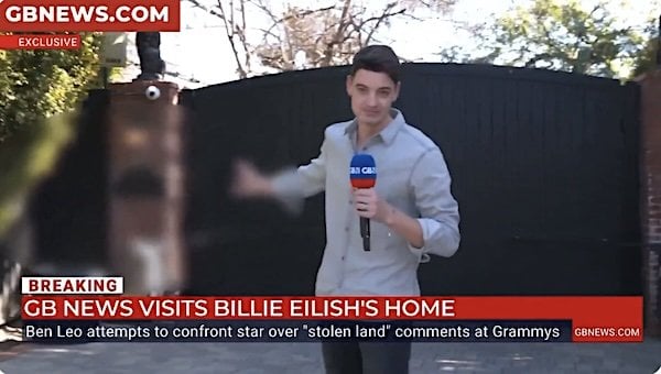 ‘Let us in please’: Watch reporter beg for access to Billie Eilish mansion ‘because this is stolen land’ February 4, 2026