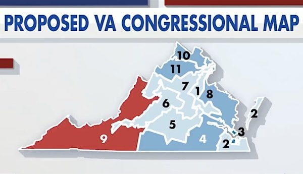 Democracy! 51% of Virginia decides other 49% only gets 9% of state’s representation in Congress April 22, 2026