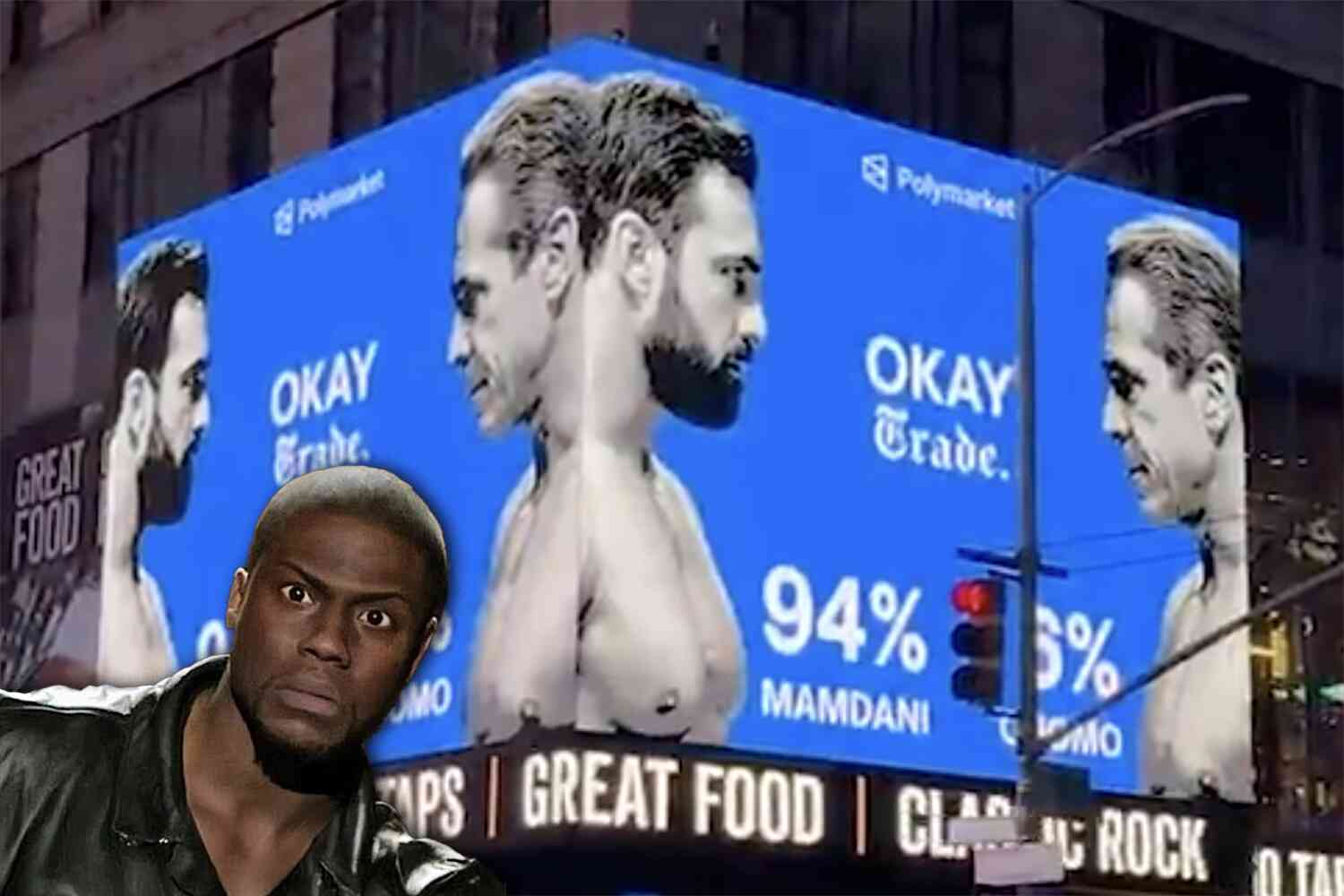 Shirtless Mamdani, Cuomo face off on NYC Polymarket billboards on Election Day November 4, 2025
