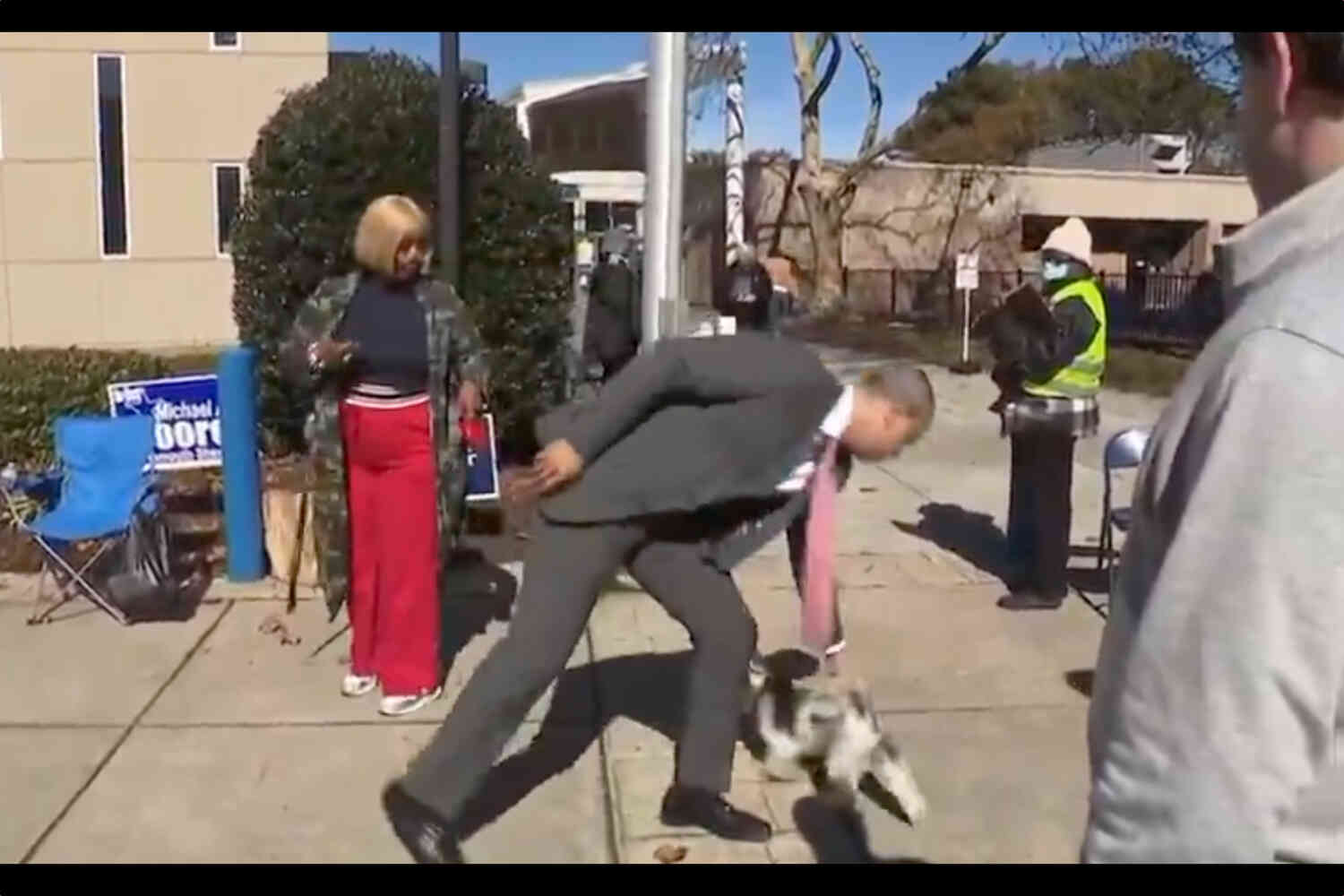 Democrat who wished death on GOP opponent pretends to kick dog outside polling station November 4, 2025