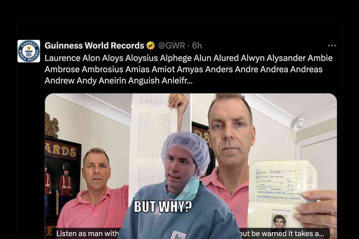 It took this Aussie an hour to read off his world-record-length name November 4, 2025